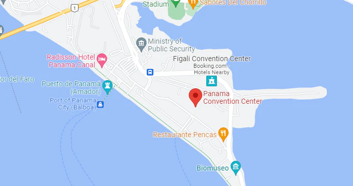 The venue is located in Amador, Calle General Juan D. Peron, Panama.